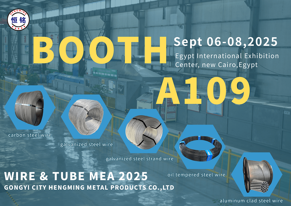 Gongyi Hengming Metal Products Co., Ltd. will be at the WIRE & TUBE MEA 2025 to showcase its self-developed and produced high-end wire products. The company invites industry professionals, distributors, and partners to visit booth A109 at the New Cairo International Exhibition Center in Egypt from September 6 to 8, 2025.